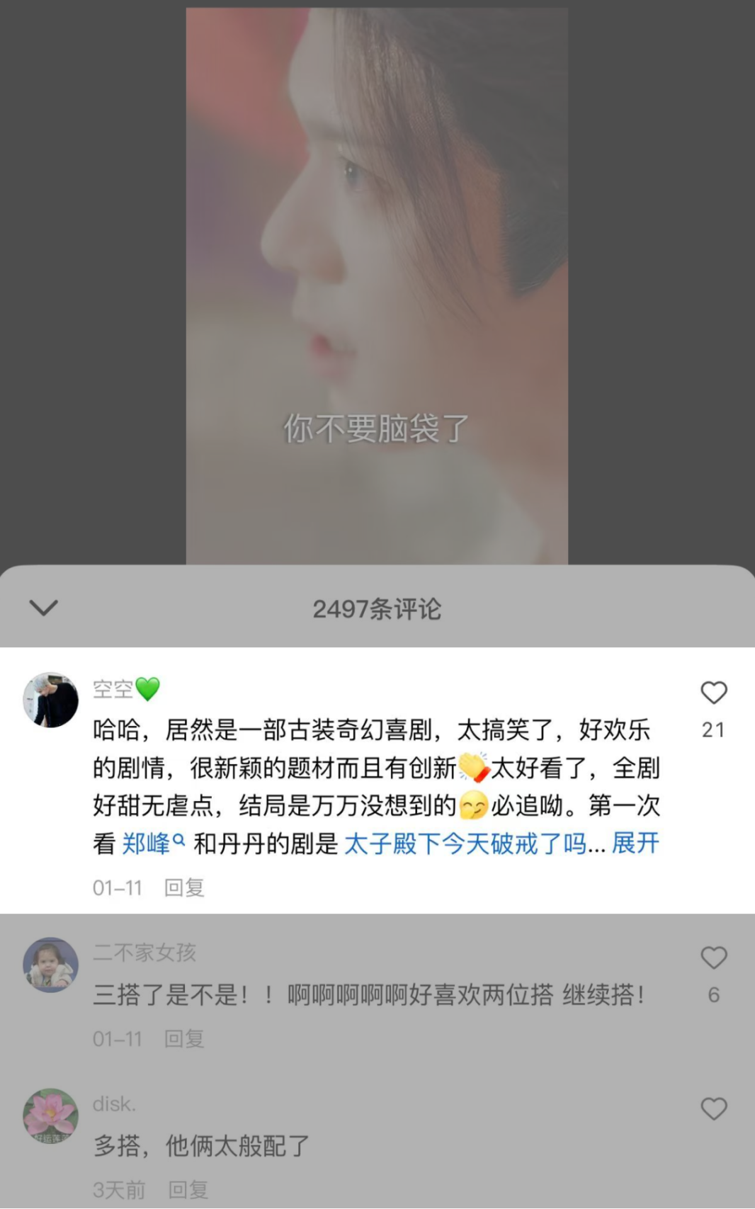 剧集更是收获观众“自来水”式安利,不仅被盛赞“剧情新颖欢乐,全程无虐点,堪称解压下饭神剧”,演员郑锋对男女主魂穿反差感的细腻演绎也获好评,剧中主演三搭的CP感更是成为热议焦点,高粘性互动与正面评价,印证了剧集内容与口碑的双重成功。