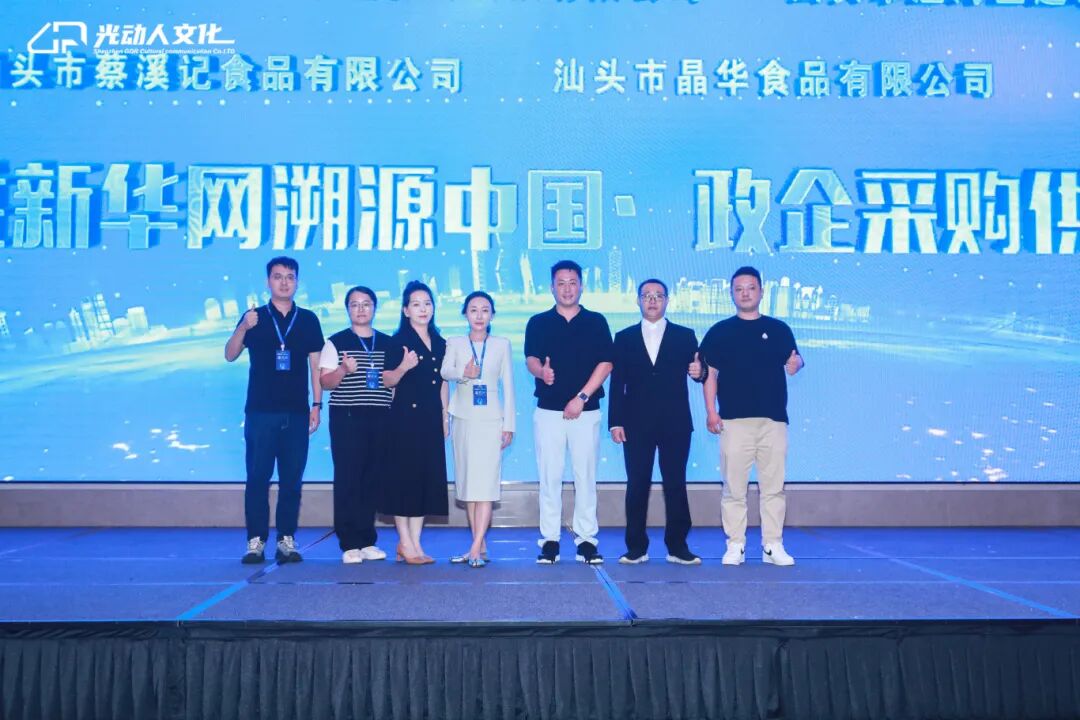 活动释放重磅合作:光动人依托全国服务网络与多元资源,将为企业提供新华网“溯源中国•政企采购供应链平台”入驻全流程服务。并在现场,光动人董事夏衡基携实丰文化发展股份有限公司、广东新佳奇科技有限公司、汕头市澄海区建雄玩具实业有限公司、汕头市蔡溪记食品有限公司、汕头市晶华食品有限公司五家企业代表宣布正式入驻“溯源中国”平台。